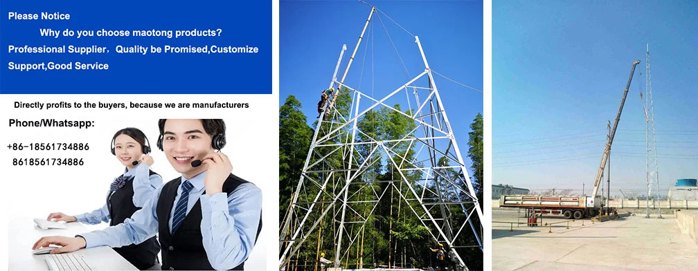 Mao Tong est l’un des principaux fabricants, fournisseurs et exportateurs de tours à treillis en acier à angle de tour de communication en Chine. La tour de communication est composée de composants en acier tels que le corps de la tour, la plate-forme, le paratonnerre, l'échelle d'escalade et le support d'antenne, et est traitée par galvanisation à chaud et anticorrosion.