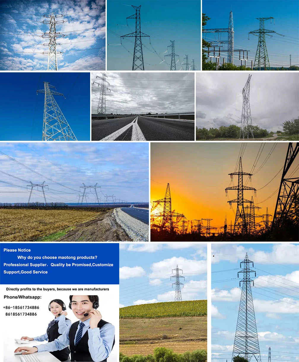 Trouvez une vaste sélection de tours électriques de transmission haute tension 750 KV en provenance de Chine à Mao Tong. Notre société peut fabriquer tous les niveaux de tension de poteaux en acier et de tours d'angle en acier. Nous disposons également d'une licence de fabrication de poteaux en tube d'acier UHV de 1 000 KV. Nous pouvons fournir une conception optimisée et une fabrication raffinée selon les exigences ou les spécifications des clients.