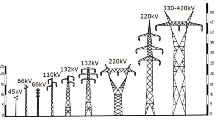 Au cours de ce processus, il existe la relation suivante entre la tour de fer et la transmission de puissance et la tension de transformation: