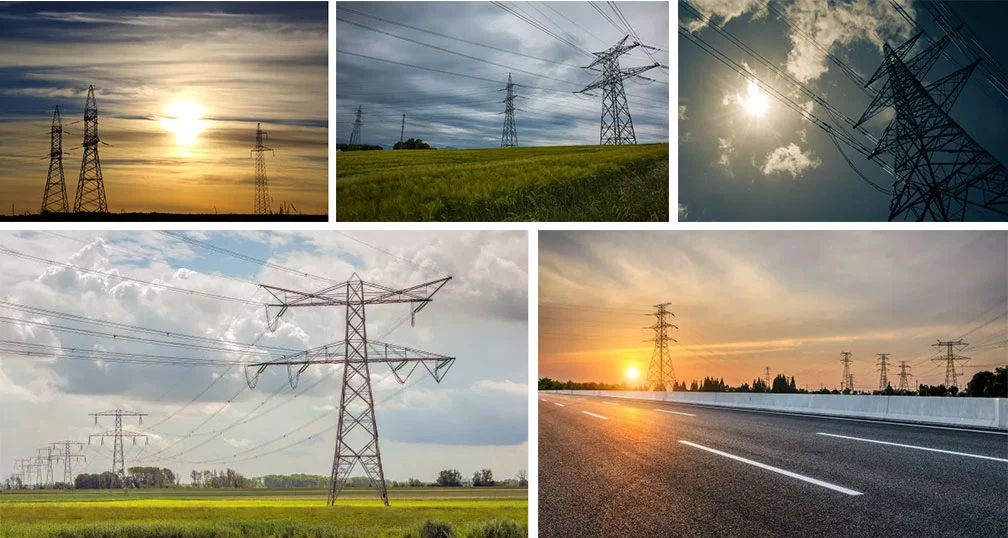 4kv, 4,8kv, 12kv, 13,2kv, 22KV, 23kv, 24KV, 24,9kv, 27,6kv, 33kv, 34,5kv, 35kv, 46kv, 66kv, 69kv, 110kv, 115kv, 132kv, 138kv, 150kv, 154kv, 161kv, 220kv, 230kv, 275kv, 287kv, 330KV, 345kv, 380kv, 400kv, 500kv, 735kv, 750kv, 765kv, 800kv, 1000kv, 1100kv, tours comprenant tour angulaire, tour tubulaire ; Tour SST et tour haubanée ; Tour à circuit unique, tour à double circuit et tour multi-circuits ; Tour en treillis ou tour monopolaire ; Châssis en H, tour de type M, tour de type T, tour de type Y ; Et chaque type de poteaux électriques, poteaux de transmission et de distribution, poteaux de commutation ; Cadres de sous-stations, etc.